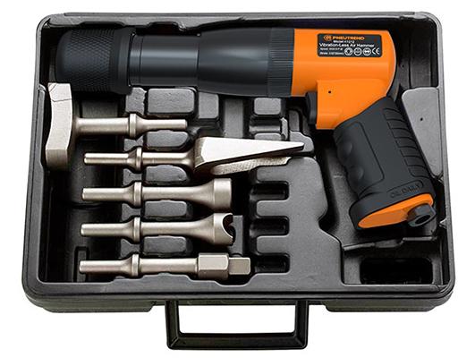 Iskuluku 2400 Isk./min. iskun pituus 33,2 mm, Vakiovarusteena 4 terää: leveydet 40,50,70 ja 100mm. kiinnitys kuusiokanta halk. 15mm, jatkopalat, ilmankulutus 79 l./min. ilmaliitäntä 1/4", pakattuna muovisalkkuun.